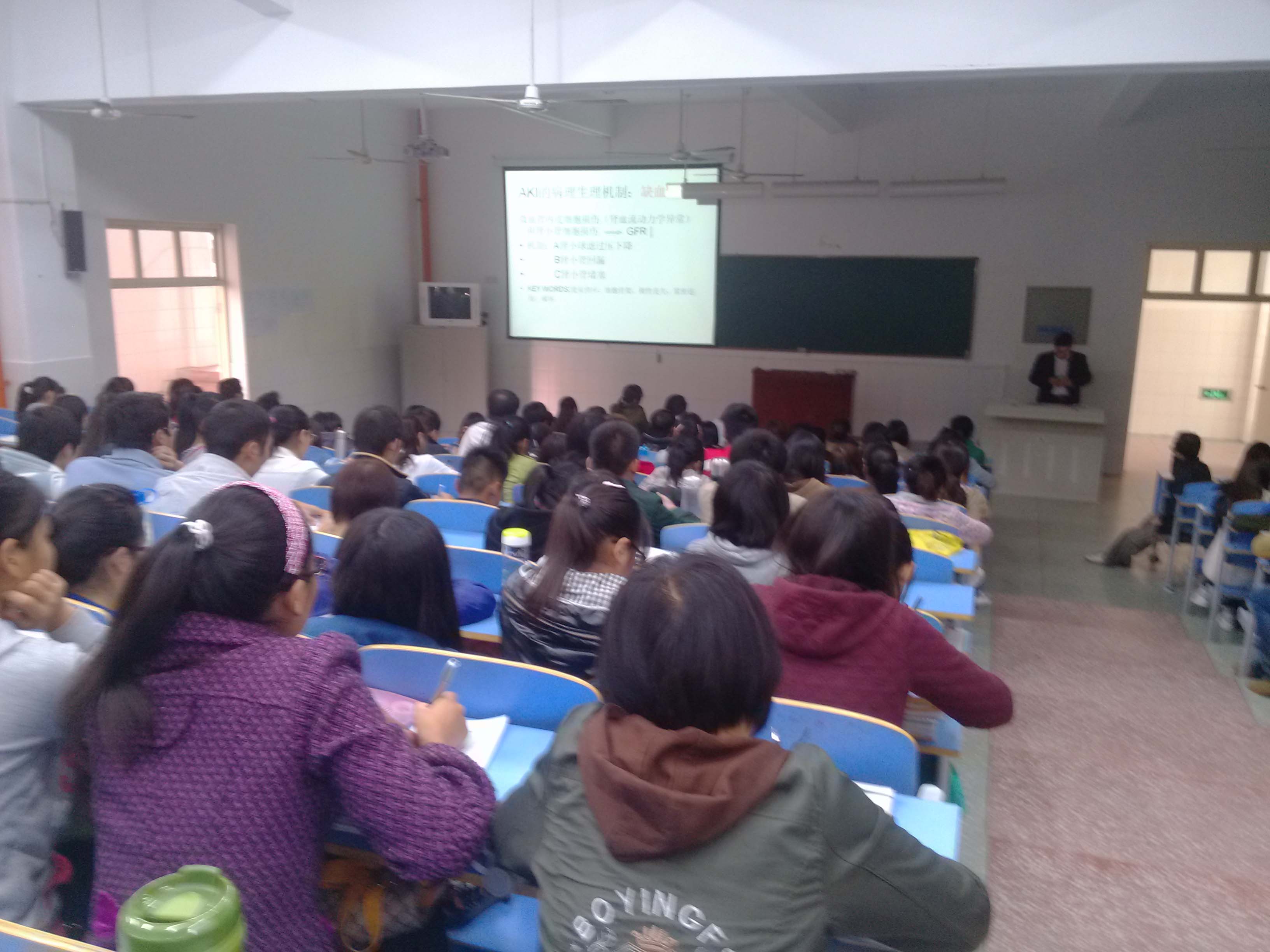 10月30号下午,在主校区4号教学楼401教室,临床系举办了 “急性肾损伤”专题讲座。讲座由我校一附院肾病风湿科主任、副主任医师张辉老师主讲,二百多名临床学子到场聆听。