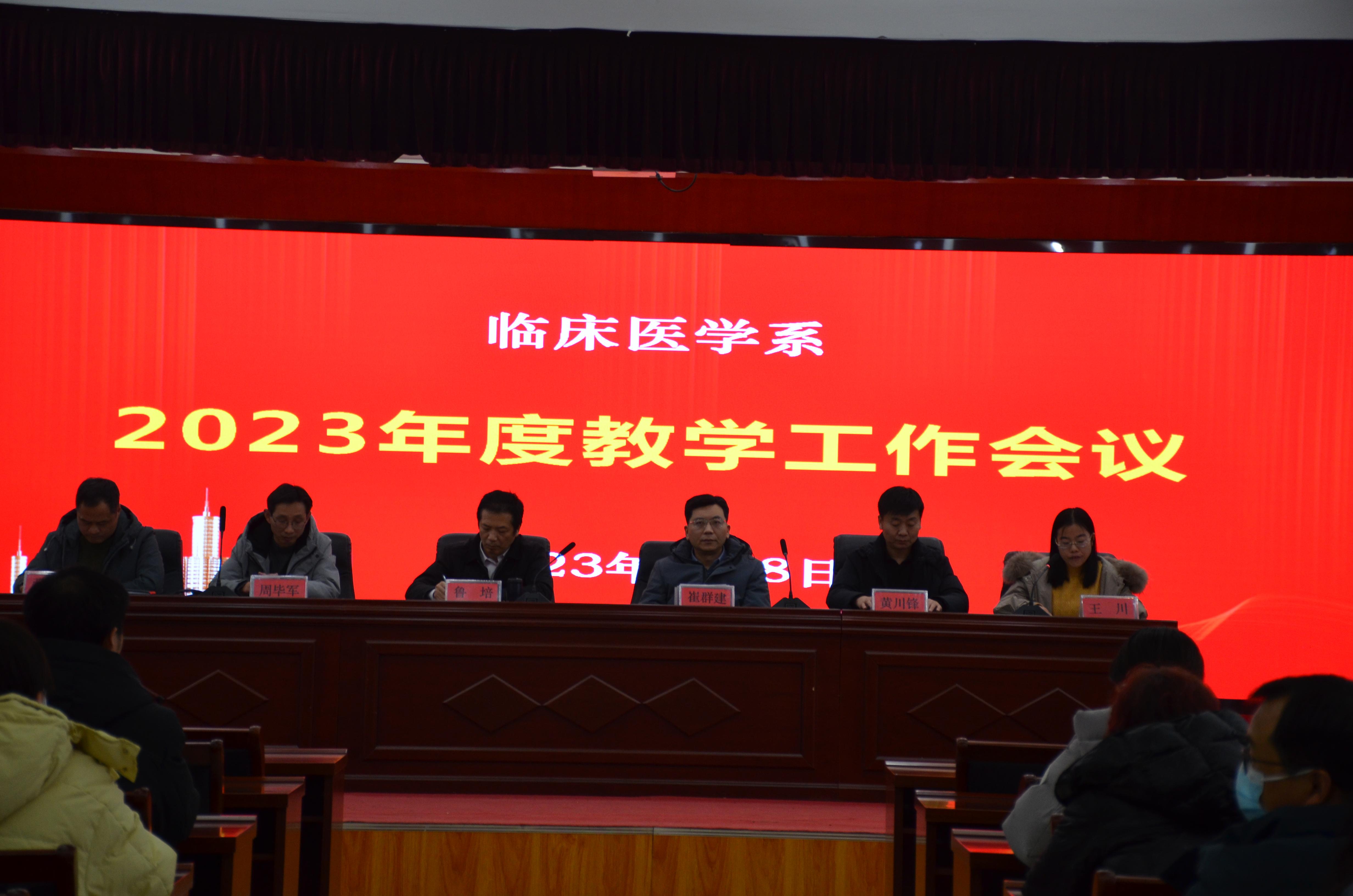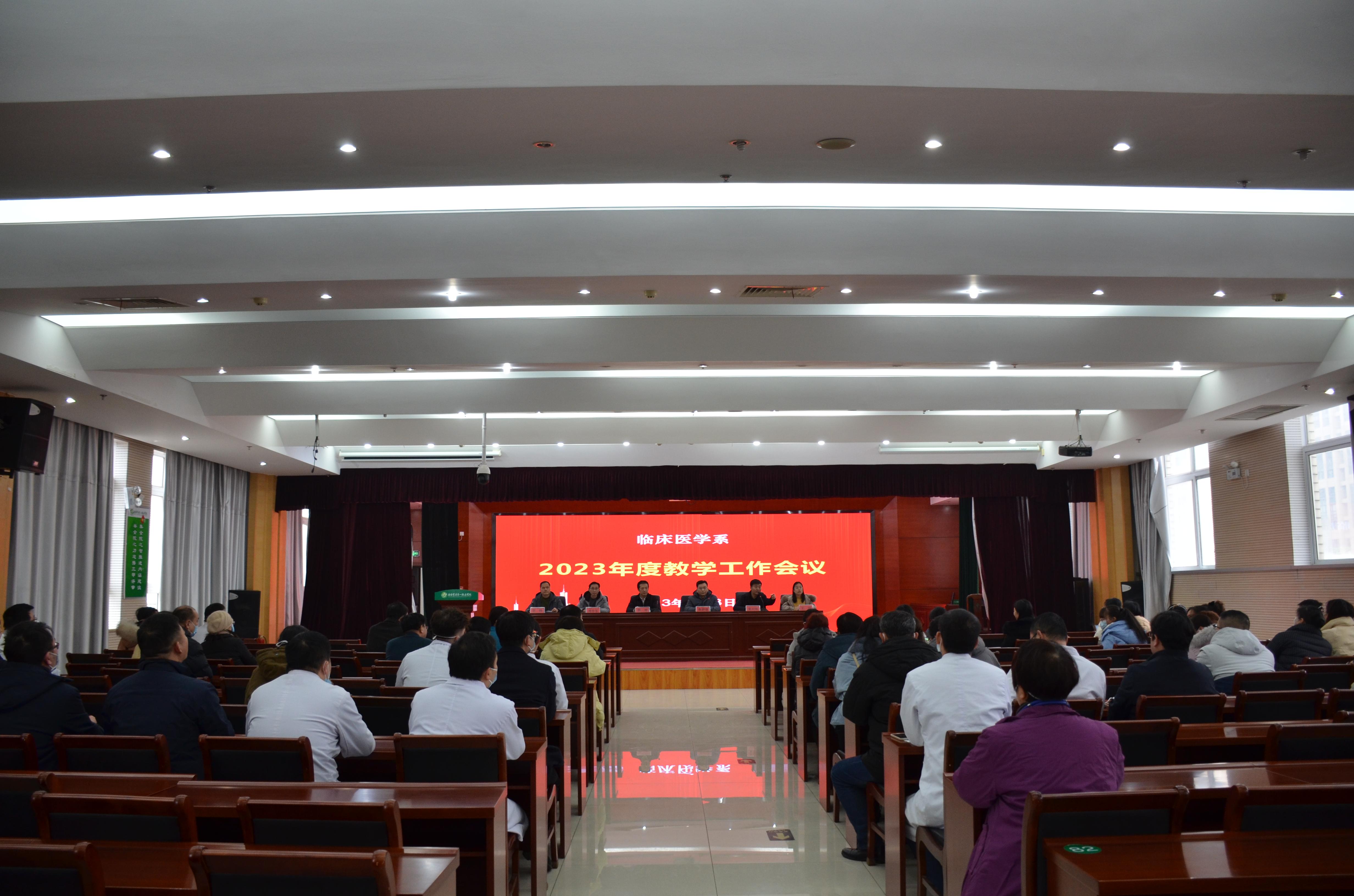 2023年2月8日,临床医学系在一附院培训楼9楼会议室,组织召开2023年度教学工作会议。会议由系常务副主任黄川锋主持,系主任、一附院副院长崔群建、一附院院长助理鲁培、系副书记王川、副主任周毕军、科研副主任张铮等领导出席会议,本年度在临床系任课的一附院老师及全体临床系教师、辅导员参加会议。