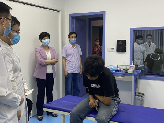 范真认真听取了SP教学考核的实施过程,在临床医学模拟中心监控室查看了各个考站的开展情况,并深入考站认真观看学生的体检操作,仔细倾听SP教学信息反馈,对SP教学考核工作给予了高度评价。范真指出,我校是河南省唯一一家SP培训基地,要充分利用我校优势资源,擦亮品牌,创新教学模式,为提升我校人才培养质量打下坚实基础。