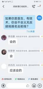 此次疫情,无数医护人员勇敢地站出来,当起了人民群众的保护神,用生命诠释医学生的责任,这本身就是一部生动的职业道德教育活教材。想到这一点,在开学前几天,邱老师利用短视频和学生“见面”,鼓励学生向奋战在一线的医护人员学习,把责任和使命牢牢刻在心里。