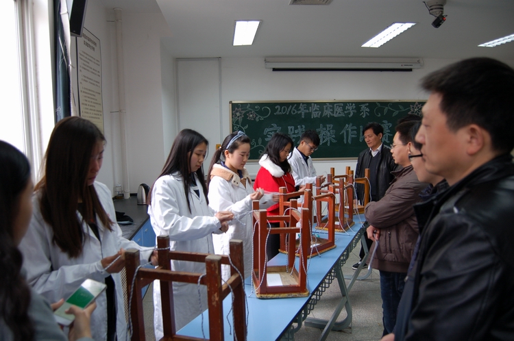 3月16日下午,一场异常激烈的外科打结比赛在4号教学楼2204教室展开,系外科实验室和教研室的5名教师担任评委,系领导、辅导员出席比赛现场,来自大二各班的55名学生参加此次比赛。
