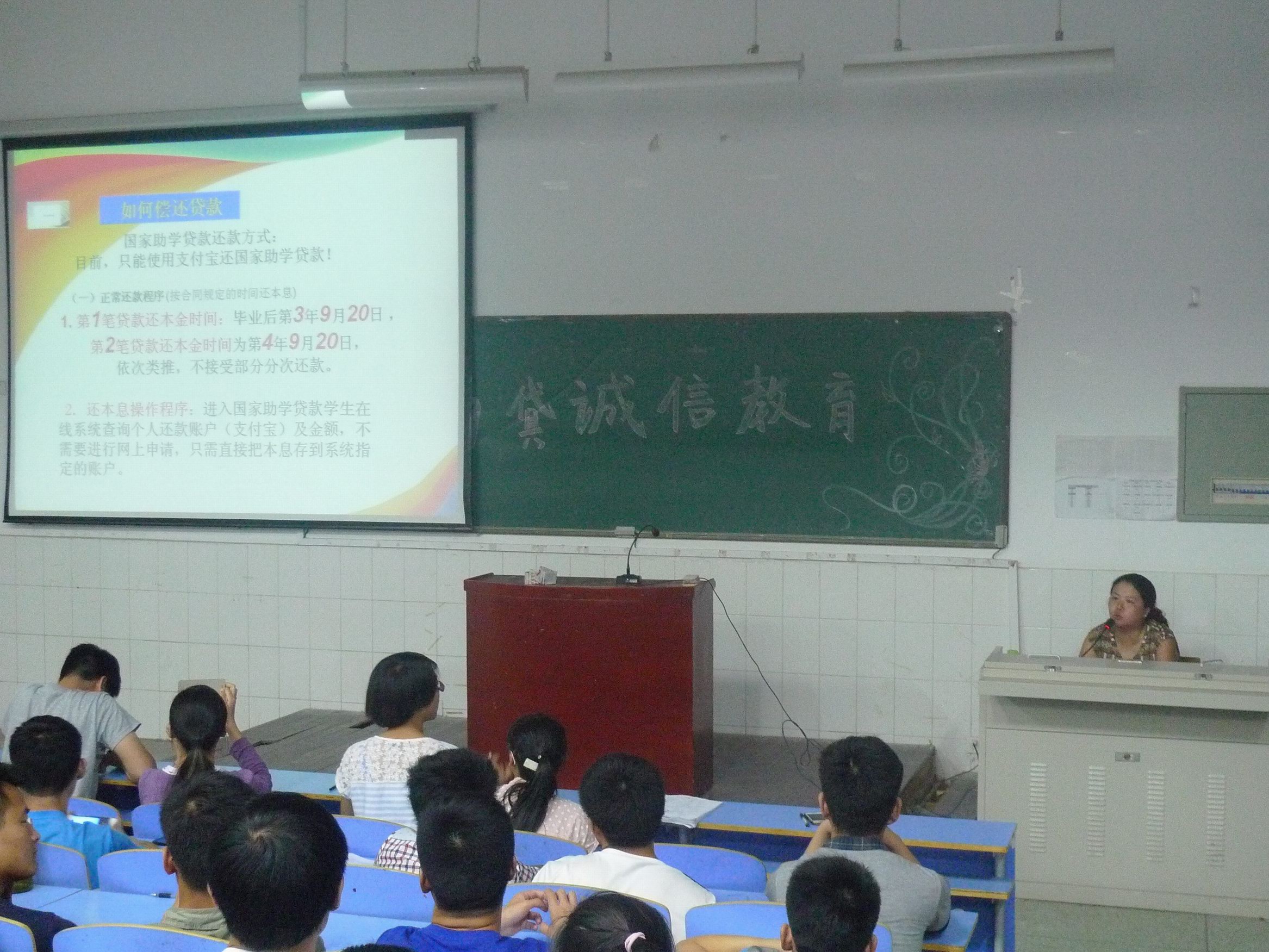 王赟老师就助学贷款的还款方式和国家开发银行助学贷款学生在线服务系统、支付宝、学生展期办理等重要操作流程逐一向在座学生和老师进行讲解。