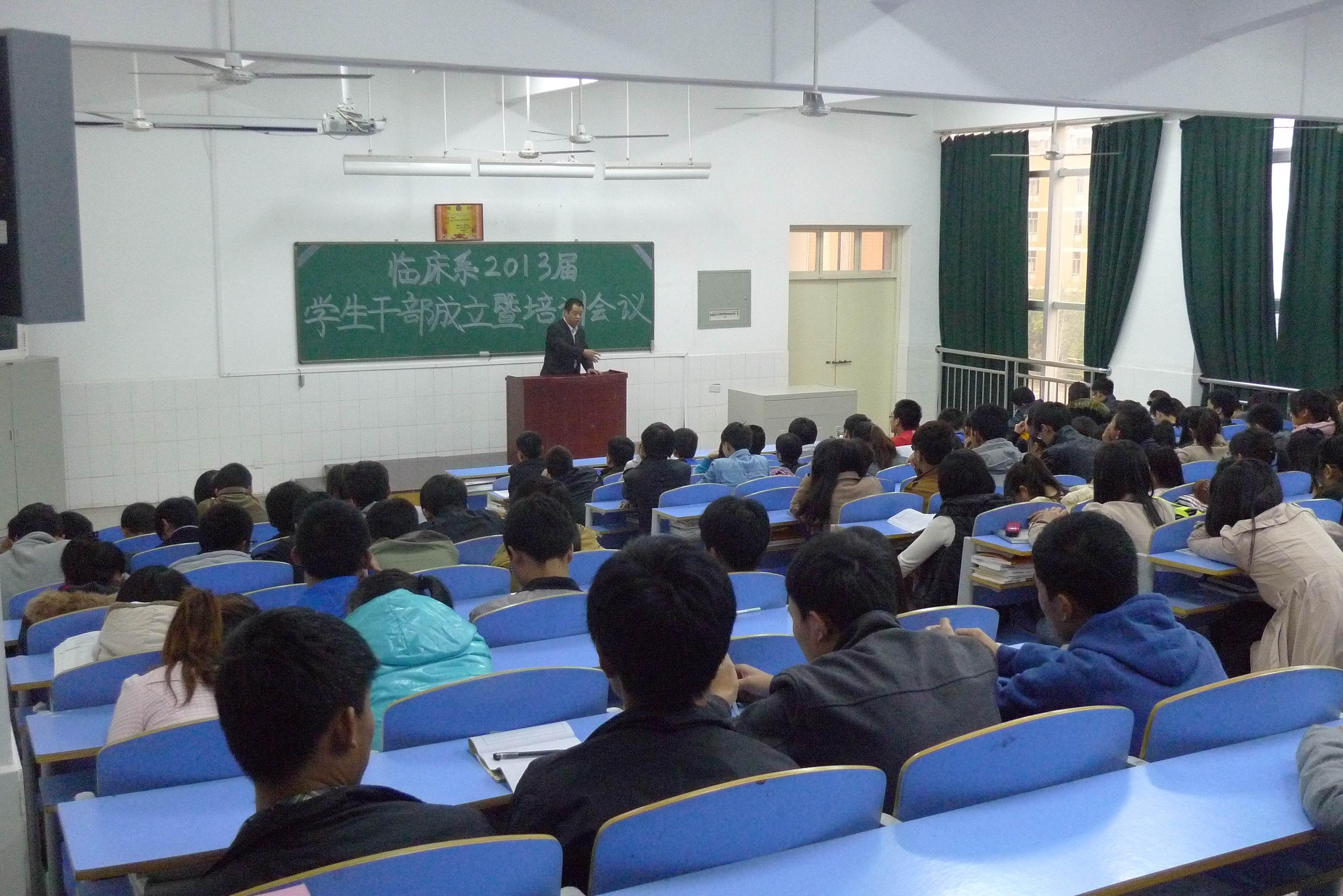 为进一步提高学生干部综合素质,我系于2013年10月30日——11月4日开展临床医学系2013届学生干部培训活动。此次培训活动由系党总支书记秦玖刚、副书记张立润和学工办主任邢献坤等主讲,系2013届学生会干部及各班班委共200多名学生参加。
