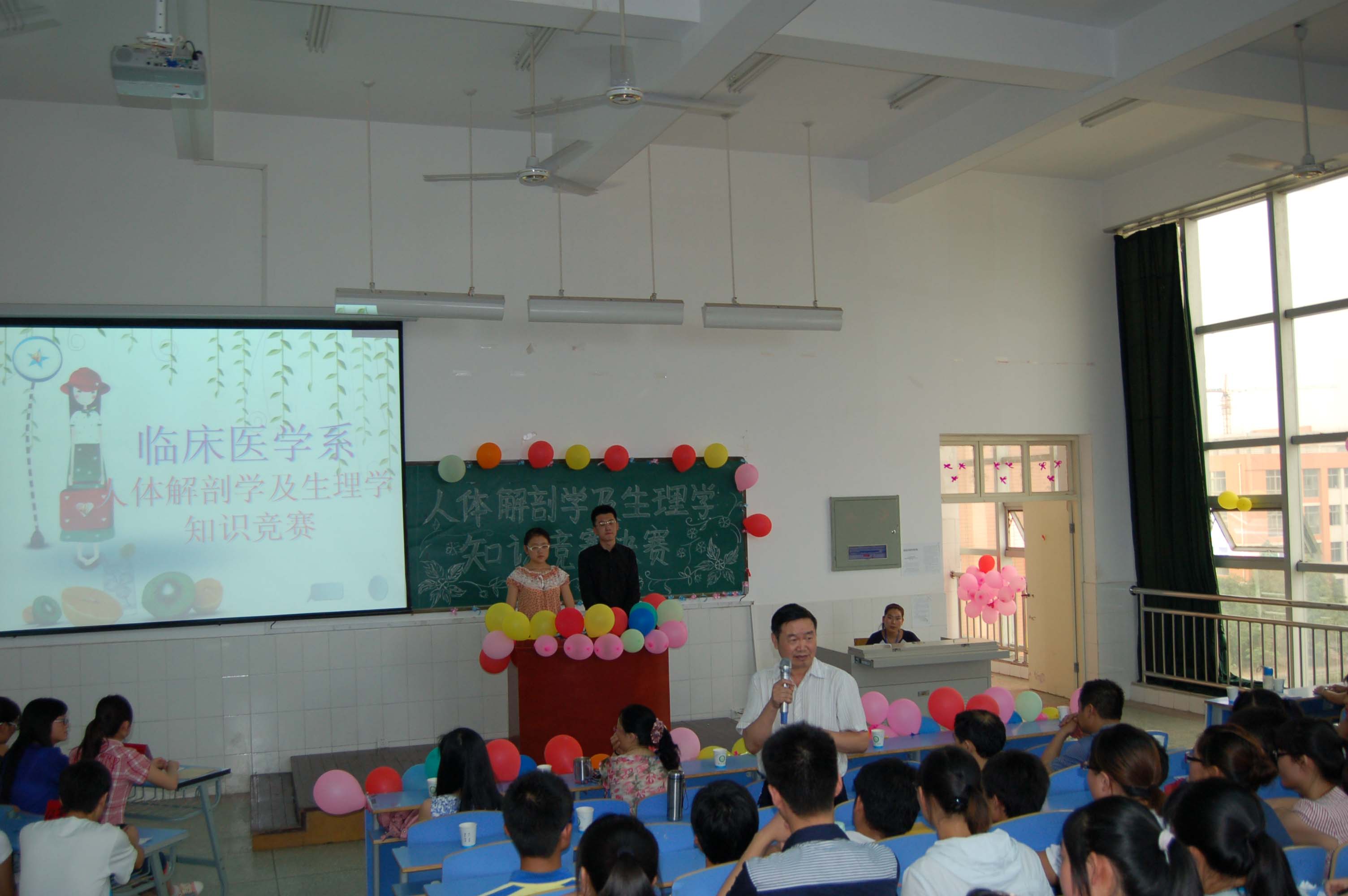 6月5日下午5:00,临床医学系在4号教学楼501教室成功举办了人体解剖学及生理学知识竞赛决赛。教务处张东献处长、基础医学部刘荣志主任、程田志教授和医学技术系杨友谊主任应邀出席,担任评委。临床系领导班子和各班学生代表共200余人参加了此项活动。
