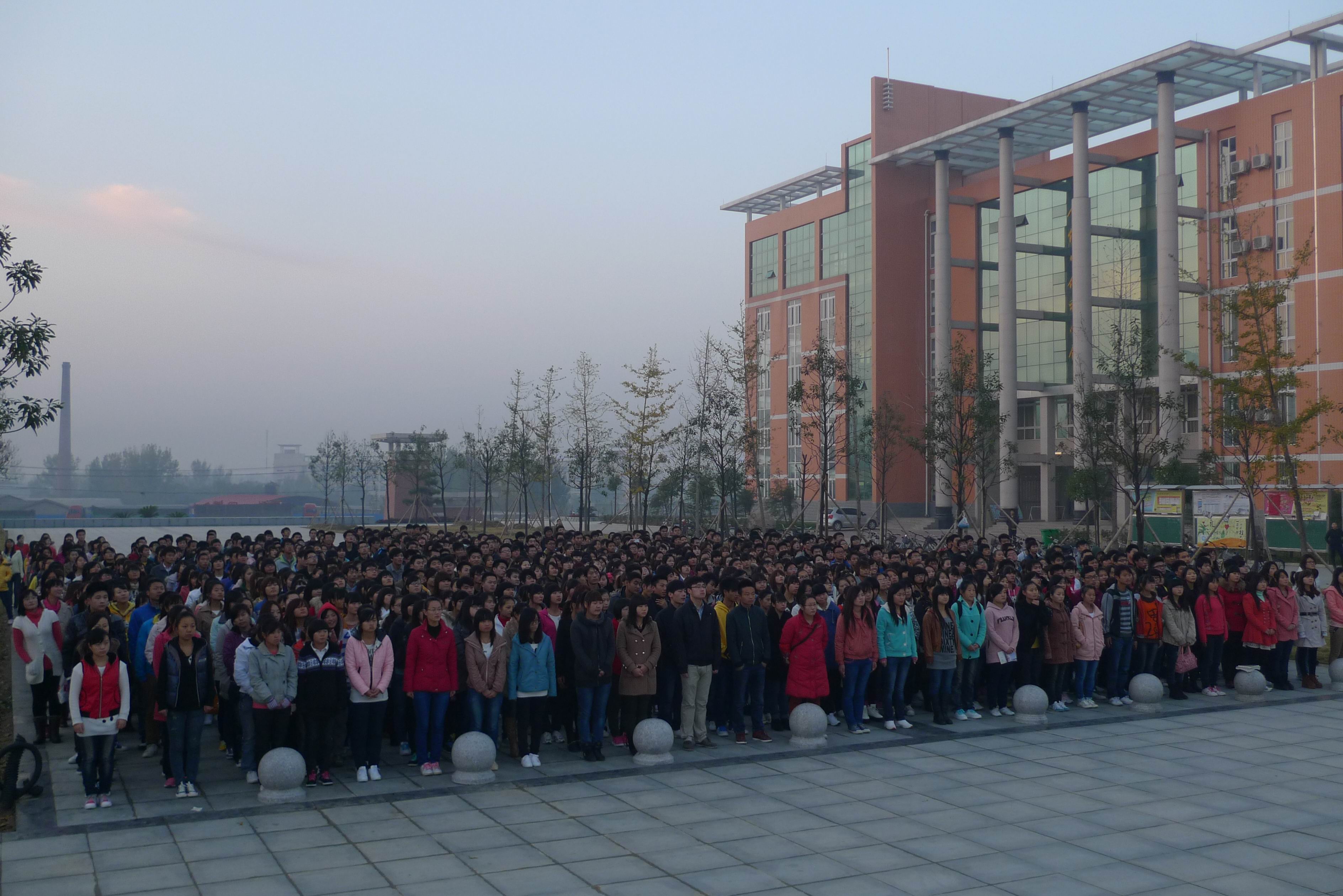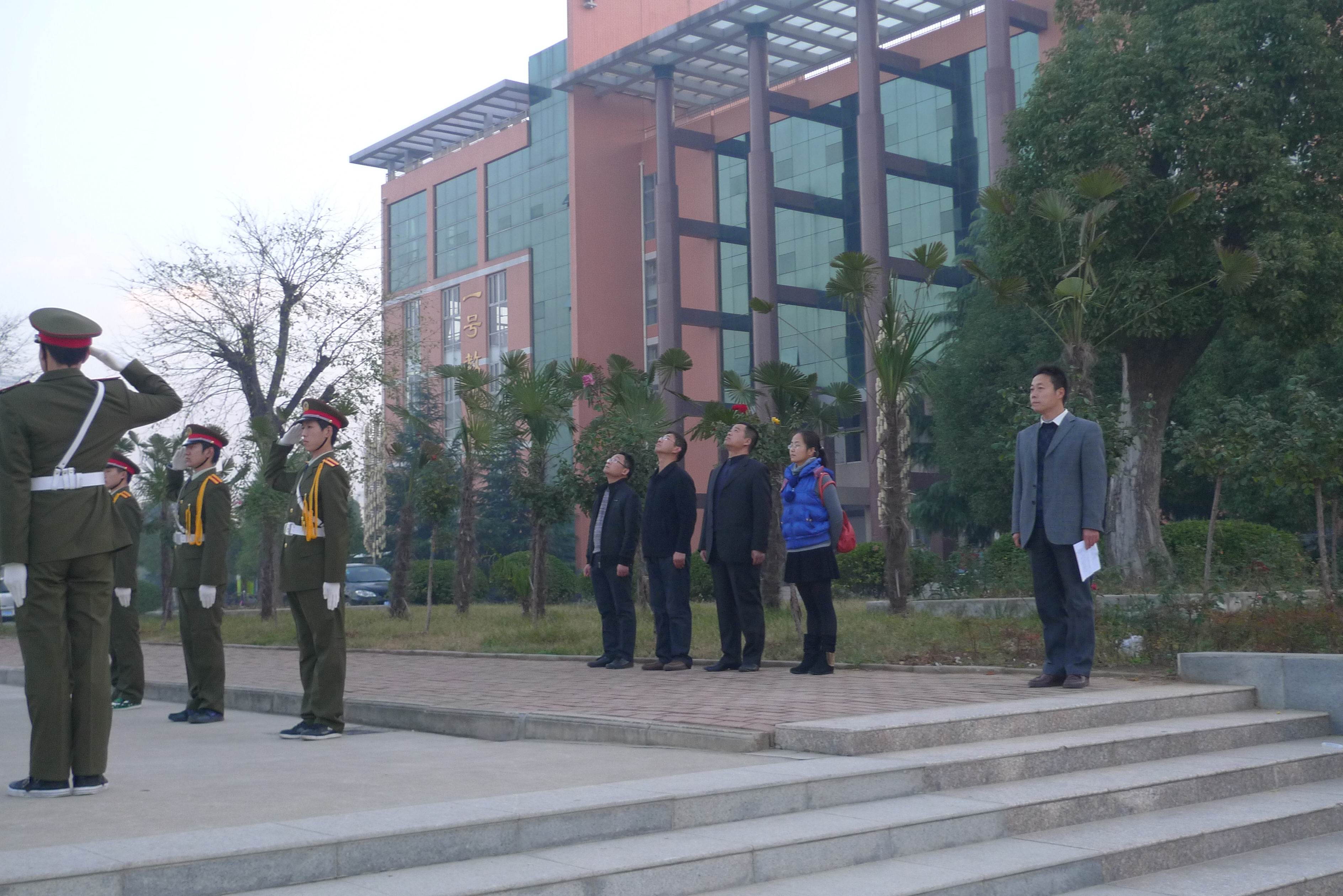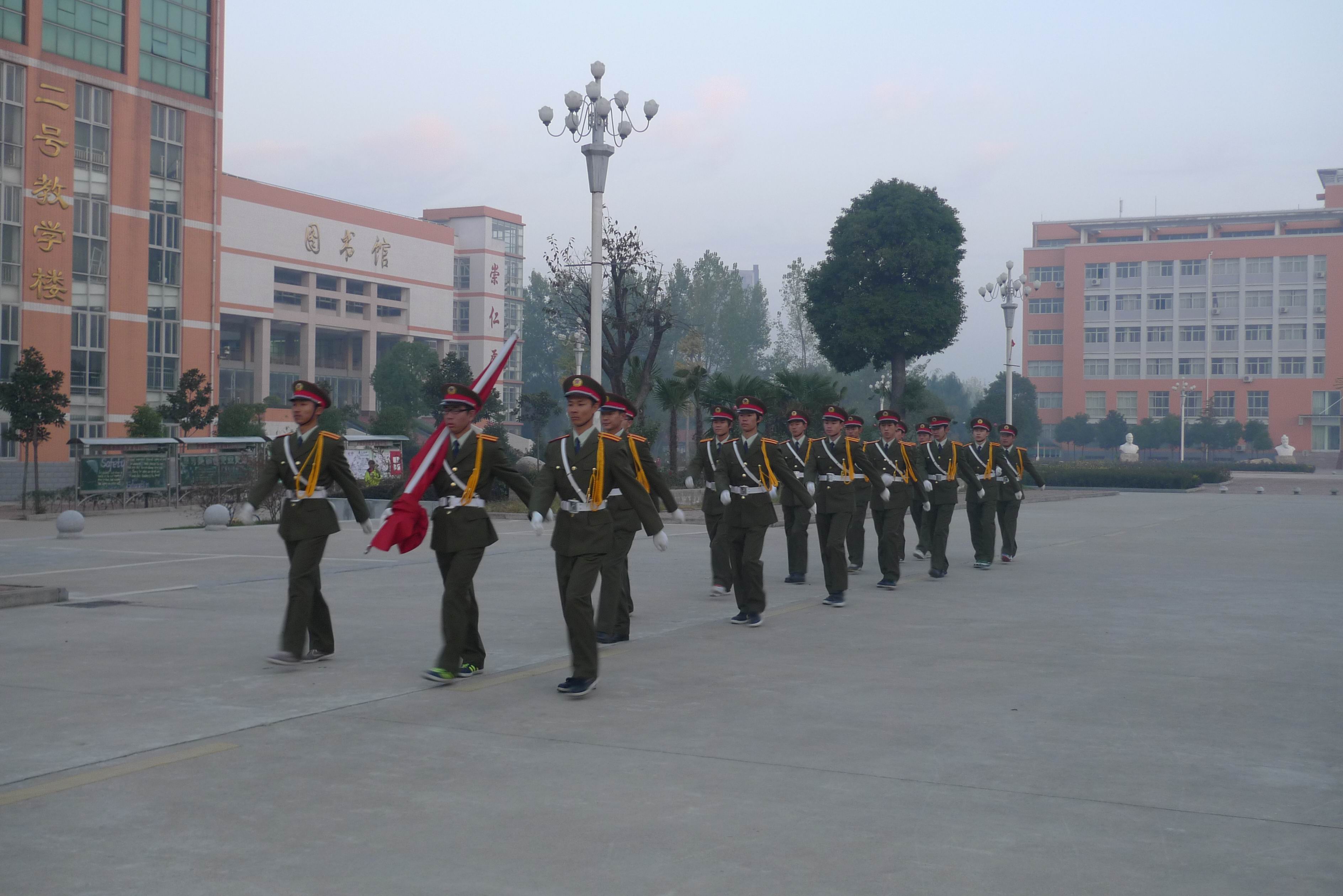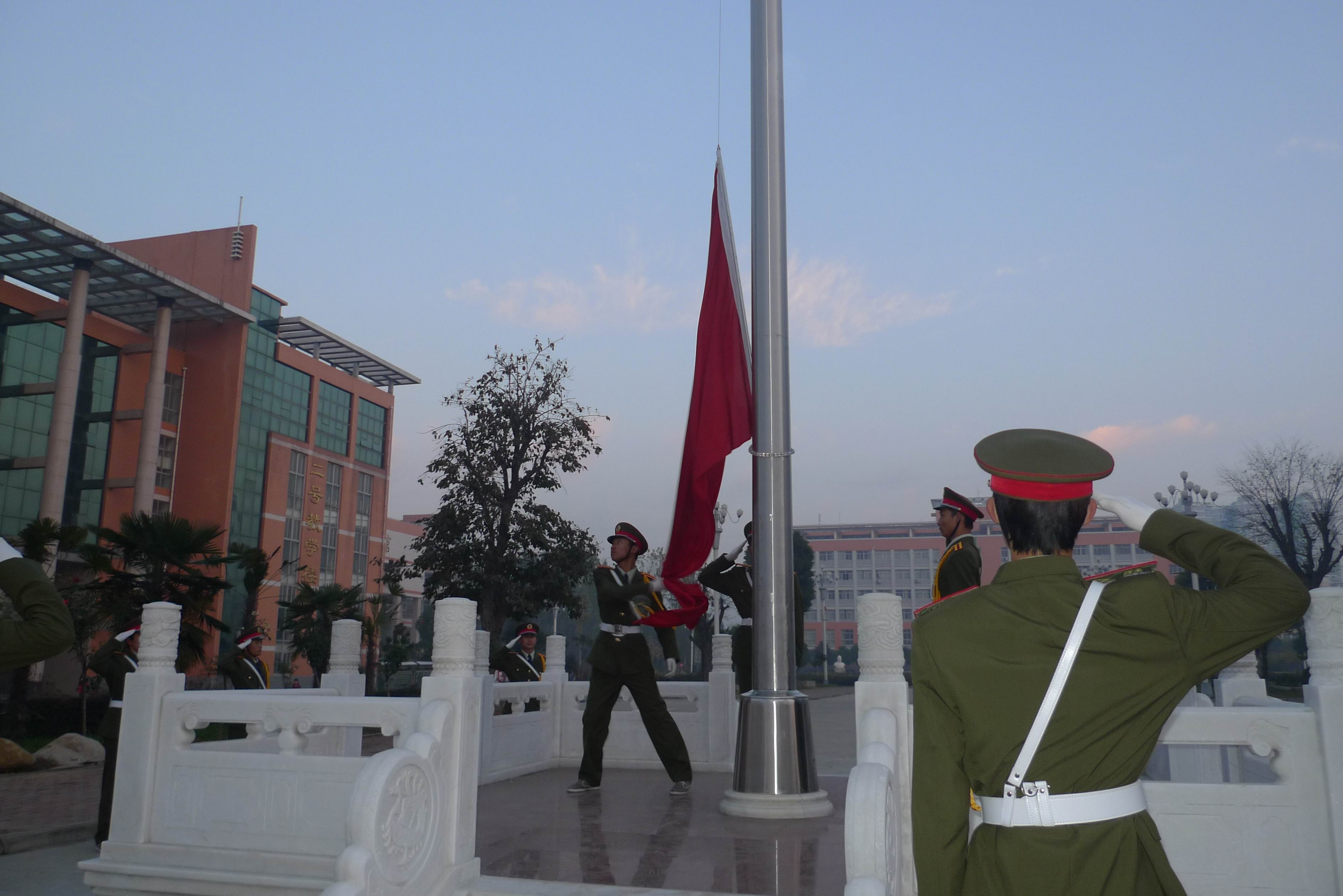 伴随着东方的曙光,校国旗班统一着装,整齐列队,踏着坚定有力的步伐,护卫着国旗走向升旗台。在朝阳跃出地平线的那一刻,随着激昂雄壮的国歌响起,鲜艳的五星红旗冉冉升起。全体师生怀着崇敬的心情,向国旗行注目礼。