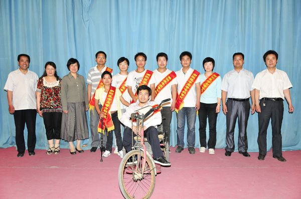 陈楠给我们讲述这样一件感人事情:来自不同的地区的09普大临床2班的杨钧哲、周博、陈有达三位同学,看到本班朱世玉同学坐着轮椅求学,非常不便时,毅然立下铮铮誓言,“同学,我背着你上学”。一诺千金,矢志不渝,两年寒暑,600多个日日夜夜,上楼下楼,饮食起居,他们用脊背和爱心铺就了朱世玉同学的求学之路。