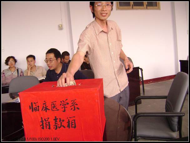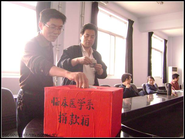 5月12日,四川汶川发生7.8级地震,造成重大人员伤亡、财产损失,临床医学系教师闻之后,心系灾区人民,积极响应校党委号召,5月14日召开专门集会,纷纷向地震灾区捐款,向灾区人民问候。一方有难,八方支援,团结一心,共渡难关。