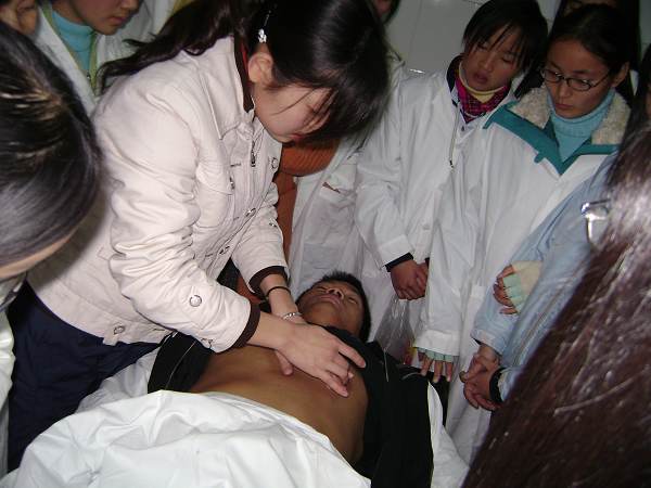 10月28日以来,临床医学系06普大、06对口、04(5)等15个高年级学生,每到下午4:30-5:30的课外活动时间,到内科实验室紧张有序地进行着技能训练,老师们教得认真仔细,一遍一遍示教,不厌其烦,同学们更是虚心求教,哪怕是看起来微不足道的细节也不放过,尽可能使自己的操作更加规范,更加熟练。每次的辅导时间为1个小时,可辅导结束后同学们还在练习,常常耽误了带教老师的下班时间。这从侧面折射出同学们心中那如饥似渴的求知欲,也显示出了我系浓厚的学习氛围。通过每天的技能培训,全系掀起了一股比学赶超的技能操作竞技风。这是临床医学系最近开展的诊断学技能操作比赛的赛前培训活动的场景。