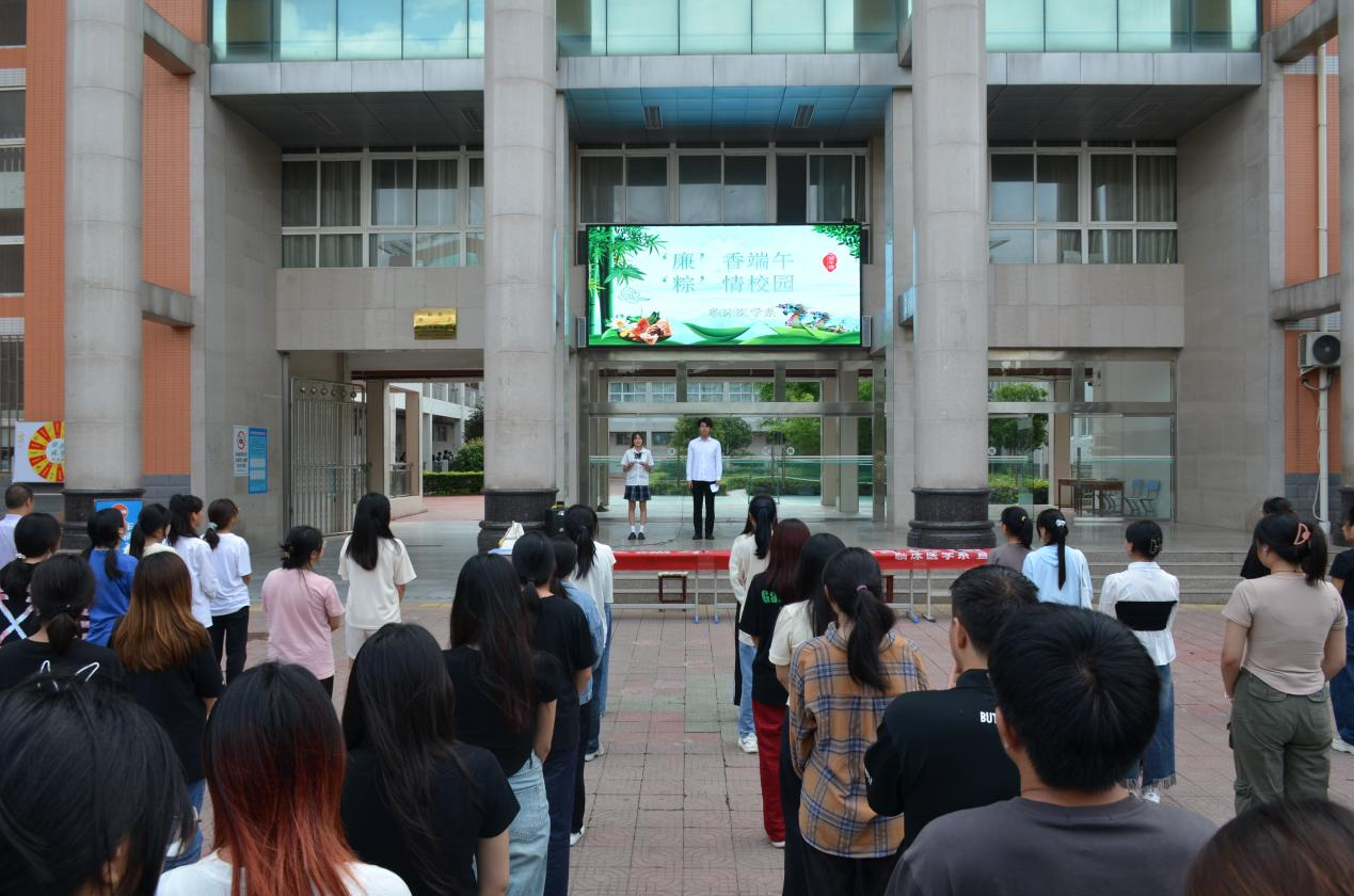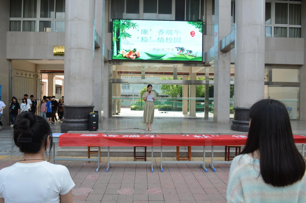 本次活动共有五项内容。活动伊始,系党总支副书记王川致辞,从端午的来源、端午的意义等方面对全体学生展开了传统文化教育和廉洁教育,寄语全体师生“路漫漫其修远兮,吾将上下而求索”,提倡大学生学习屈原的“廉洁”精神,将清正廉洁挂心上,勤俭节约过佳节;并提前祝同学们端午安康,在即将到来的期末考试中守廉洁取佳绩。