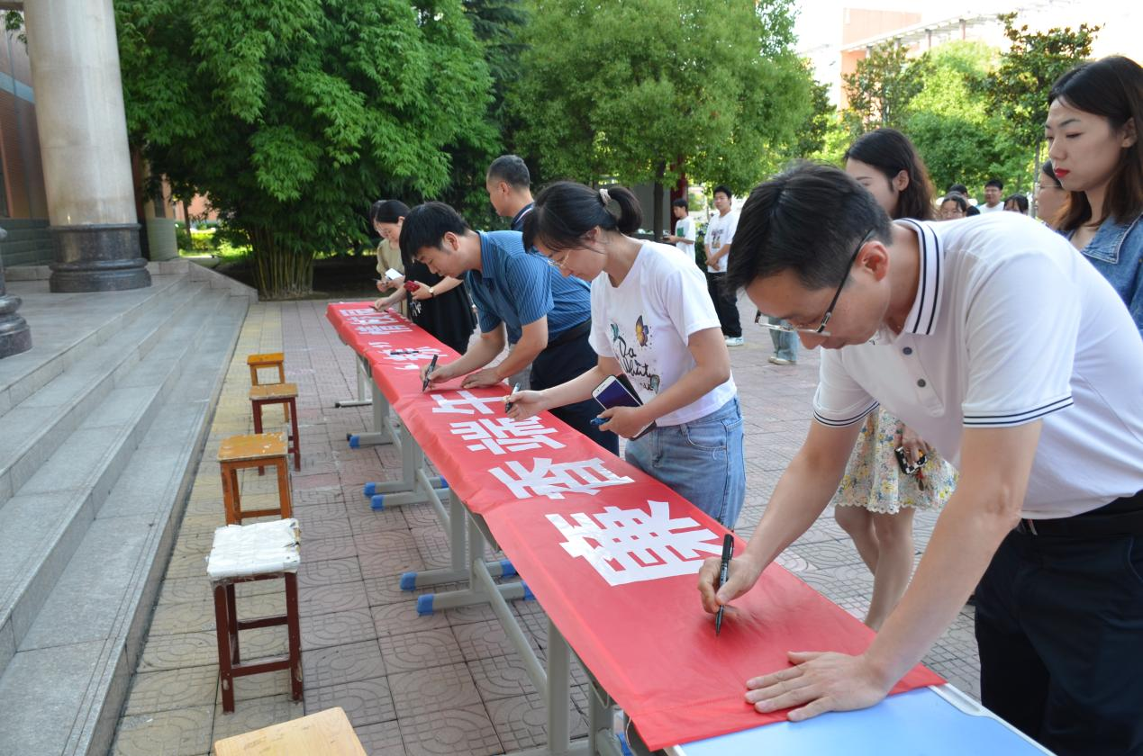 第四项,系领导、全体辅导员及学生代表在横幅上郑重进行“廉洁过节”承诺签名,一方面,寄托对屈原的思念;另一方面,用行动表明“学廉、思廉、崇廉、守廉、倡廉”的决心。