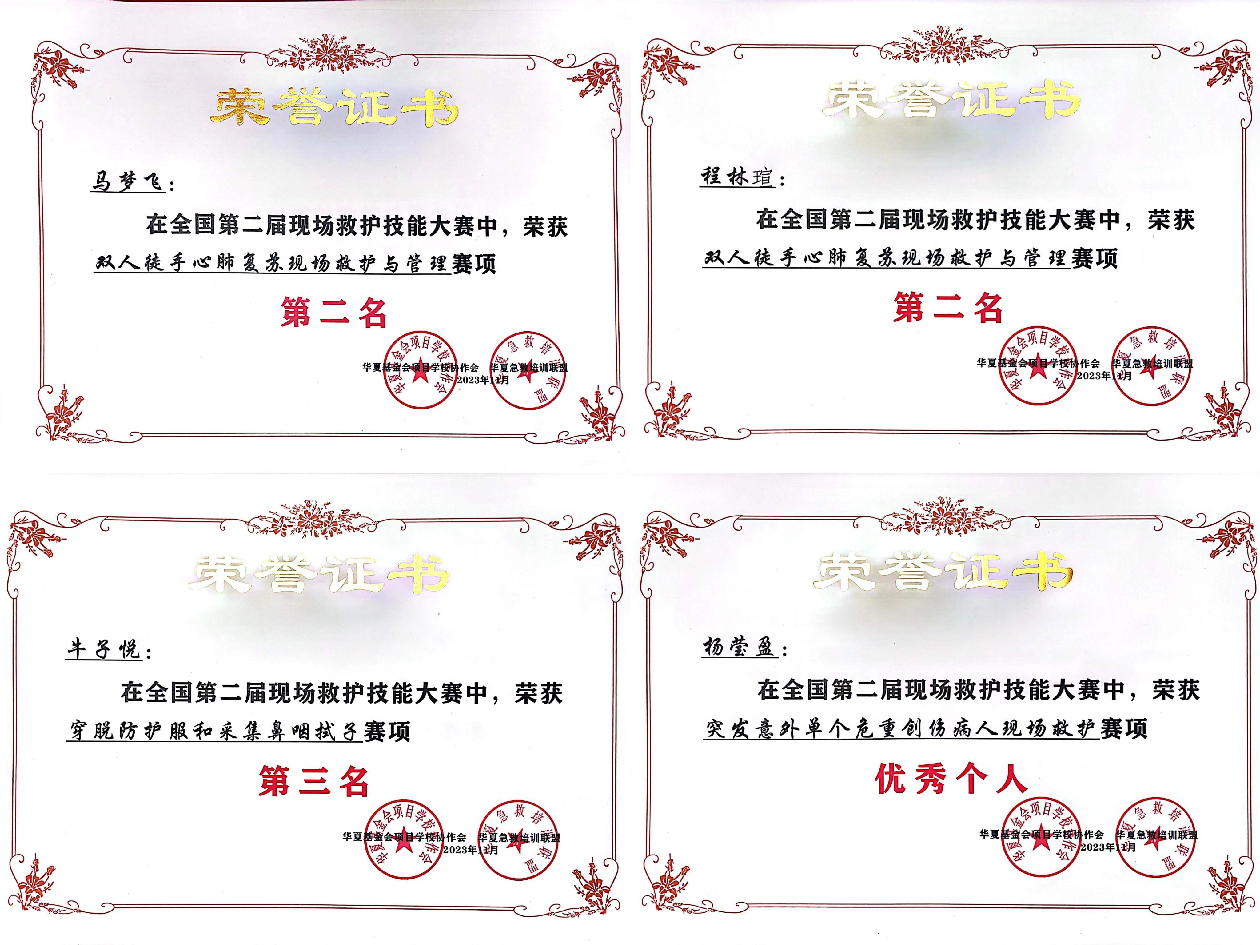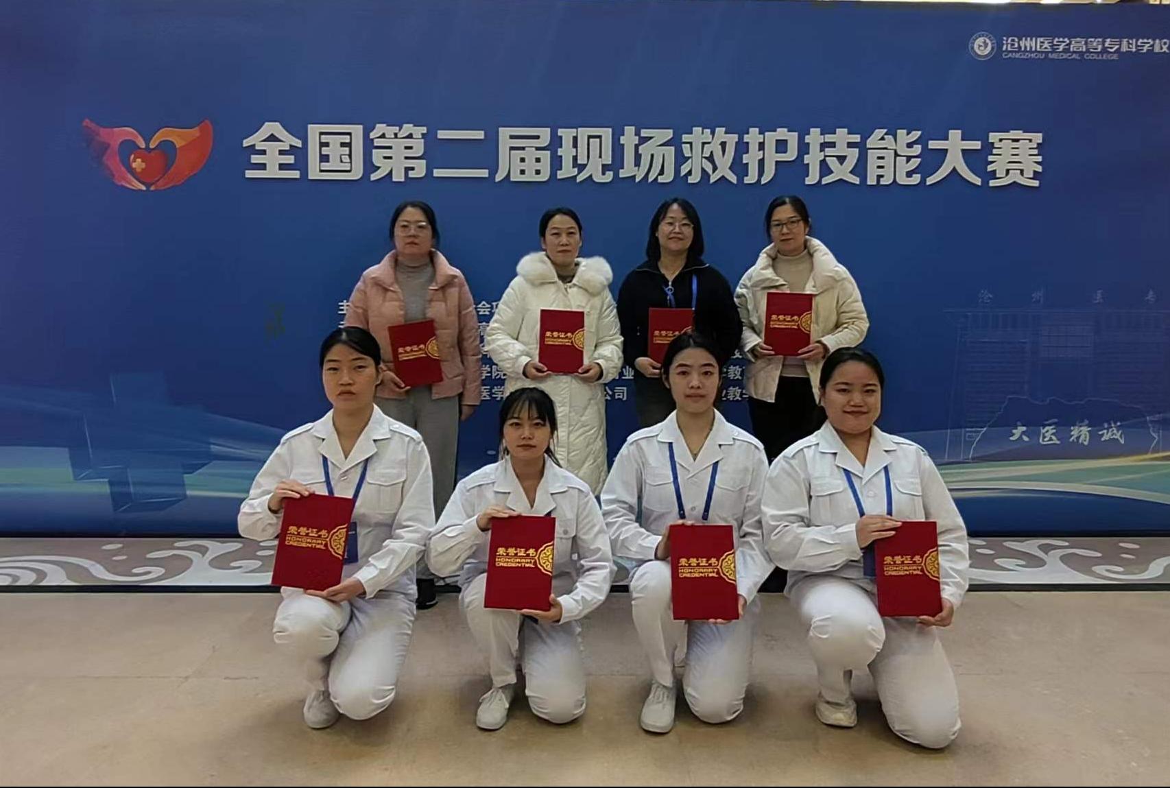 (文/侯萍)11月22日-11月26日,全国第二届现场救护技能大赛在河北沧州医学高等专科学校顺利举行。临床医学系代表学校参加了此次大赛,经过激烈角逐,我校代表队荣获团体第三名。程林瑄、马梦飞两个位同学分别获得个人单项第二名,牛子悦获个人单项第三名,杨莹盈获得个人优秀奖;侯萍、刘宛丽、魏珂和张静四位指导教师获优秀指导教师奖。