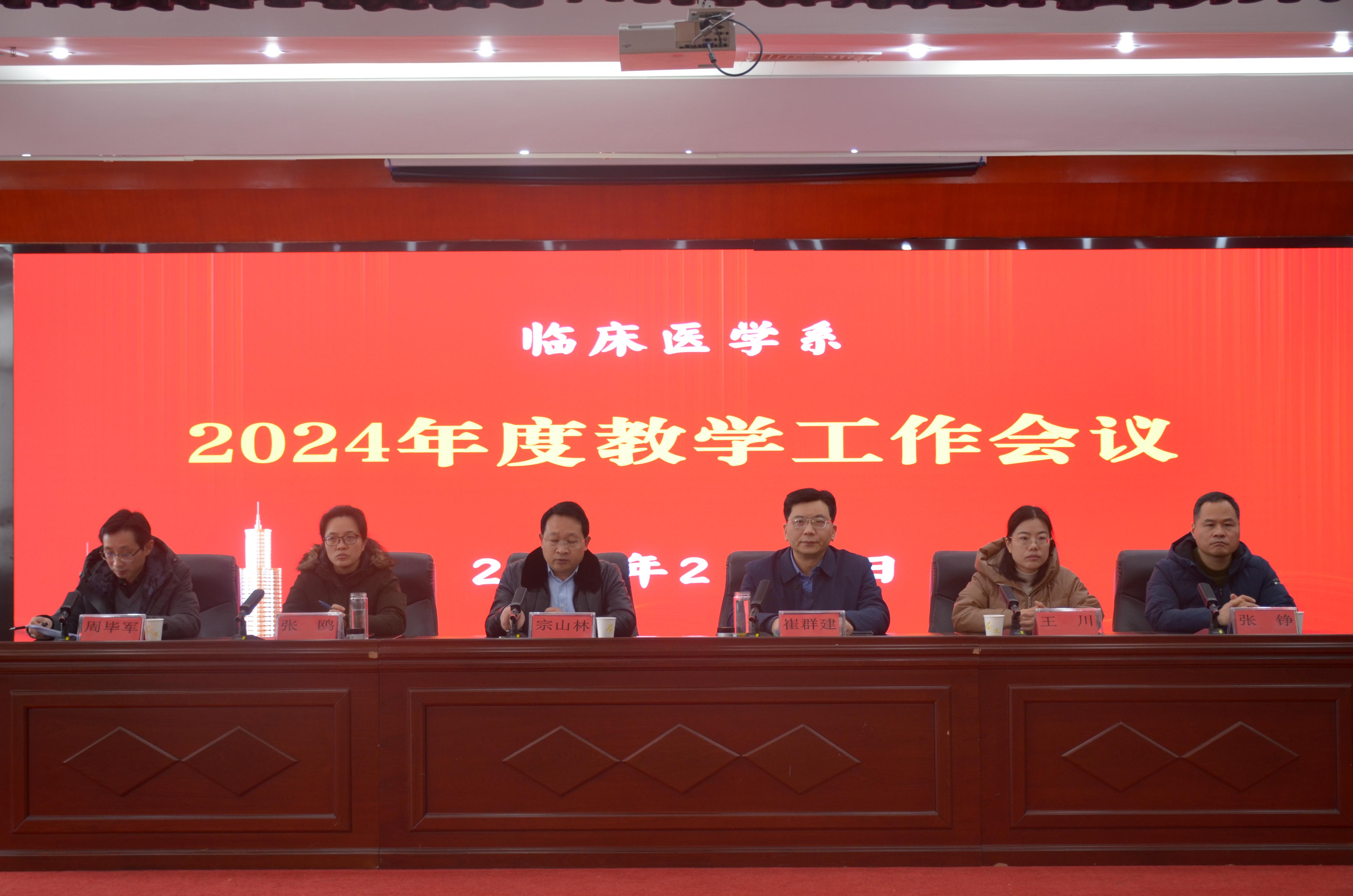 2024年2月23日,临床医学系在一附院培训楼9楼会议室召开2024年度教学工作会议。系主任、一附院副院长崔群建、一附院副院长张鸥、系党总支副书记王川、副主任周毕军、张铮等领导出席会议,本年度在临床系任课的一附院专家教授及全体临床系教师、辅导员参会,系党总支书记宗山林主持会议。