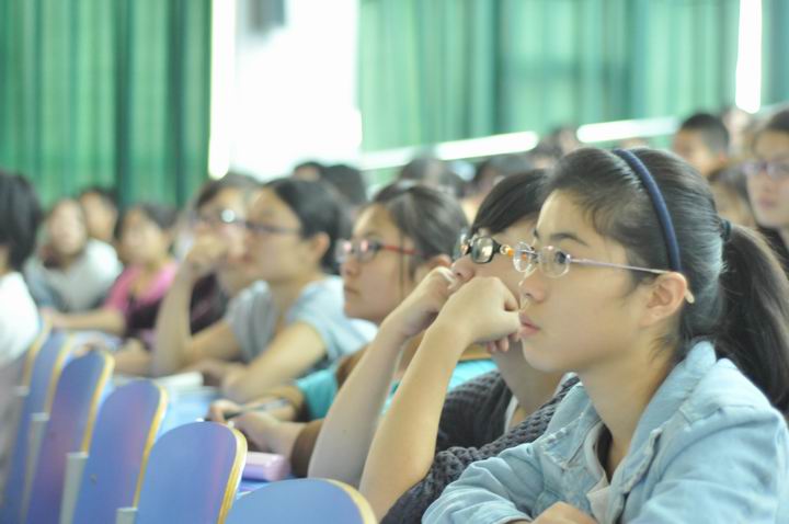 最后,讲堂主持人李中泉同学号召大家给自己的父母发一条温馨的短讯,说一句“爸妈,我爱你!”同学们纷纷拿出手机,给自己的父母发去表达孝心的短讯。讲堂在《时间都去哪了》温馨动人的旋律中拉下了帷幕。