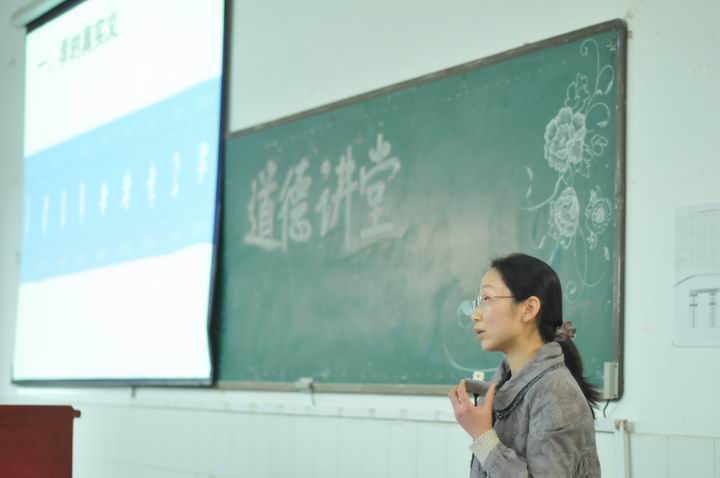 讲堂伊始,同学们合唱了歌曲《感恩的心》。接着,王主任以“孝”字的意义和演变切入主题;以周文王、周武王等古代先贤的事例分析了为什么“百善孝为先”;从“事亲、事君、立身”三个层次讲解了如何行孝立身。讲堂观看了感动中国的最美孝心少年吴林香的事迹短片,使同学们看到一个15岁女生怎样以一颗孝心面对生活的坎坷,用她的乐观开朗来承负起家庭的重担。然后同学们对自己于“百善孝为先”的感悟畅所欲言,并集体诵读了《弟子规》,重温了儒家经典。