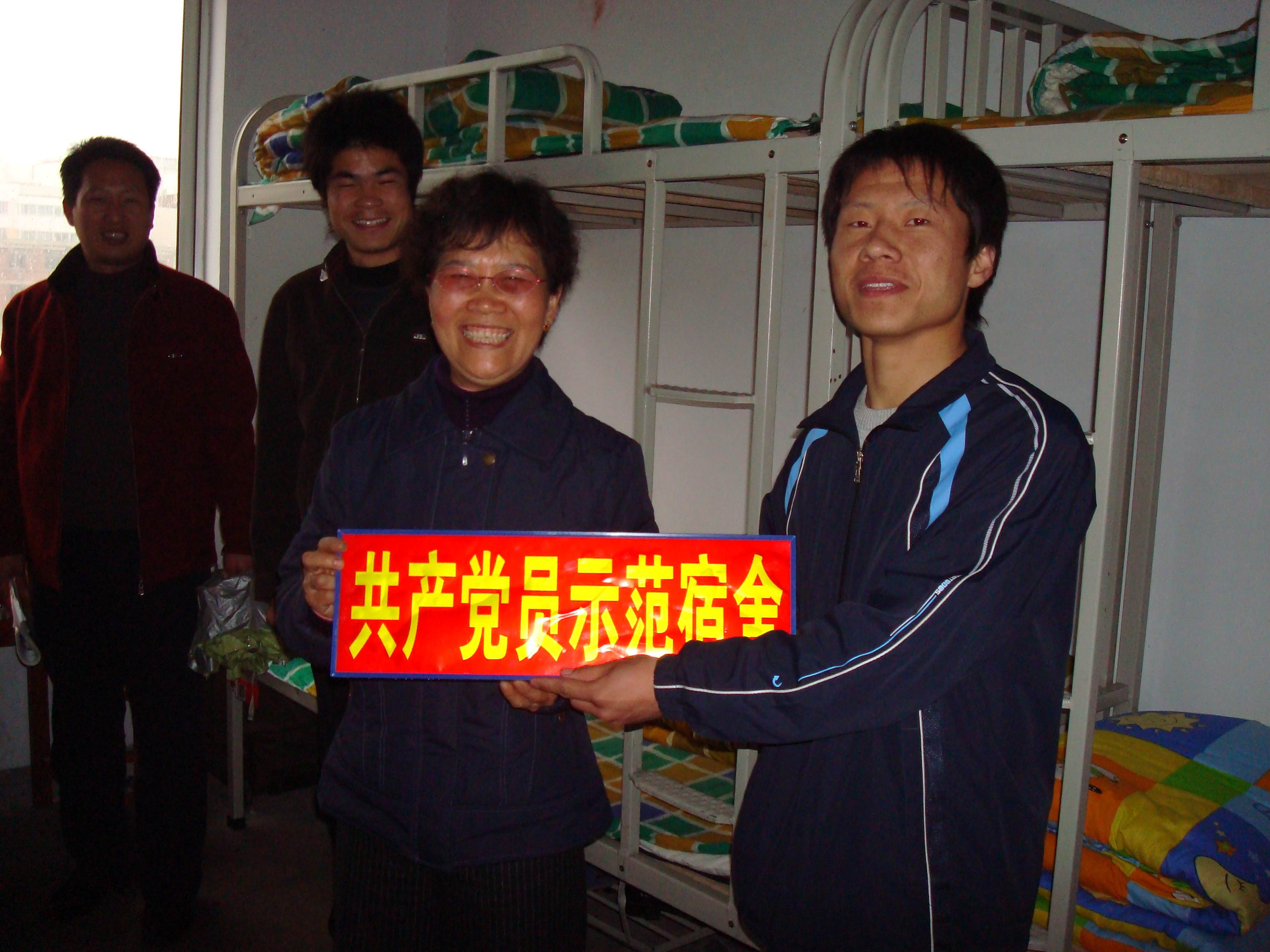 由学管支部唱导和开展的“共产党员示范宿舍”活动,经过二个多月紧张有序的工作终于落下了帷幕。2008年3月12日下午临床医学系党总支宋新书记、学管支部秦玖刚书记为学生党员宿舍悬挂“共产党员示范宿舍”,此次活动是我系深入学习“十七大精神”活动过程中的系列活动之一,旨在扎实推进学生党员示范工程的深入开展,提醒学生党员在思想、学习、生活、纪律、卫生等方面都要争优创先,充分发挥党员的骨干先锋模范作用,同时也为了更好的接受广大同学监督,进一步增强学生党员的责任感、使命感、从而真正实现“一名学生党员,一面先锋旗帜”的目标。