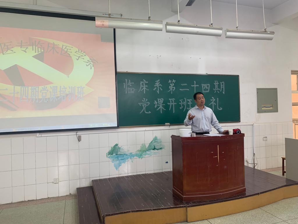本网讯(文/王桂春)为进一步做好发展党员工作,加强对入党积极分子的基础教育和培训。5月15日下午4:30分,临床医学系第24期入党积极分子培训班在401教室正式开班,开班仪式在嘹亮的国际歌声中开幕。系党总支书记秦玖刚、总支副书记张立润、辅导员王桂春及176名学员参加本次培训,开班仪式由张立润副书记主持。此次培训为期十天,包括课堂集中理论学习、分组学习、个人自学、总结讨论和结业考试等多个环节。