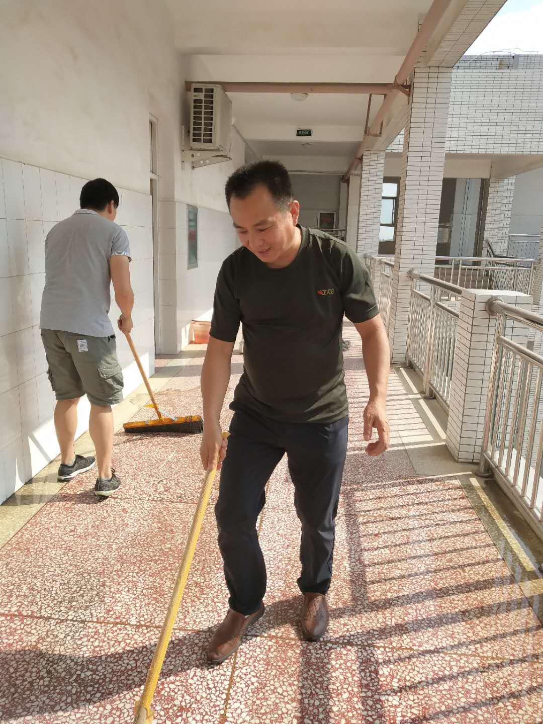 2020年9月2日下午3时,我系党总支举办“以案促改、创文共建”主题党日活动。党员先行,统一行动,各办公室、教研室、实训室,防疫消杀、卫生清扫,以良好的校容校貌和精神面貌迎接学生返校。烈日炎炎下,同志们干得热火朝天、汗流浃背,红彤彤的脸庞和胸前的党徽相映生辉。