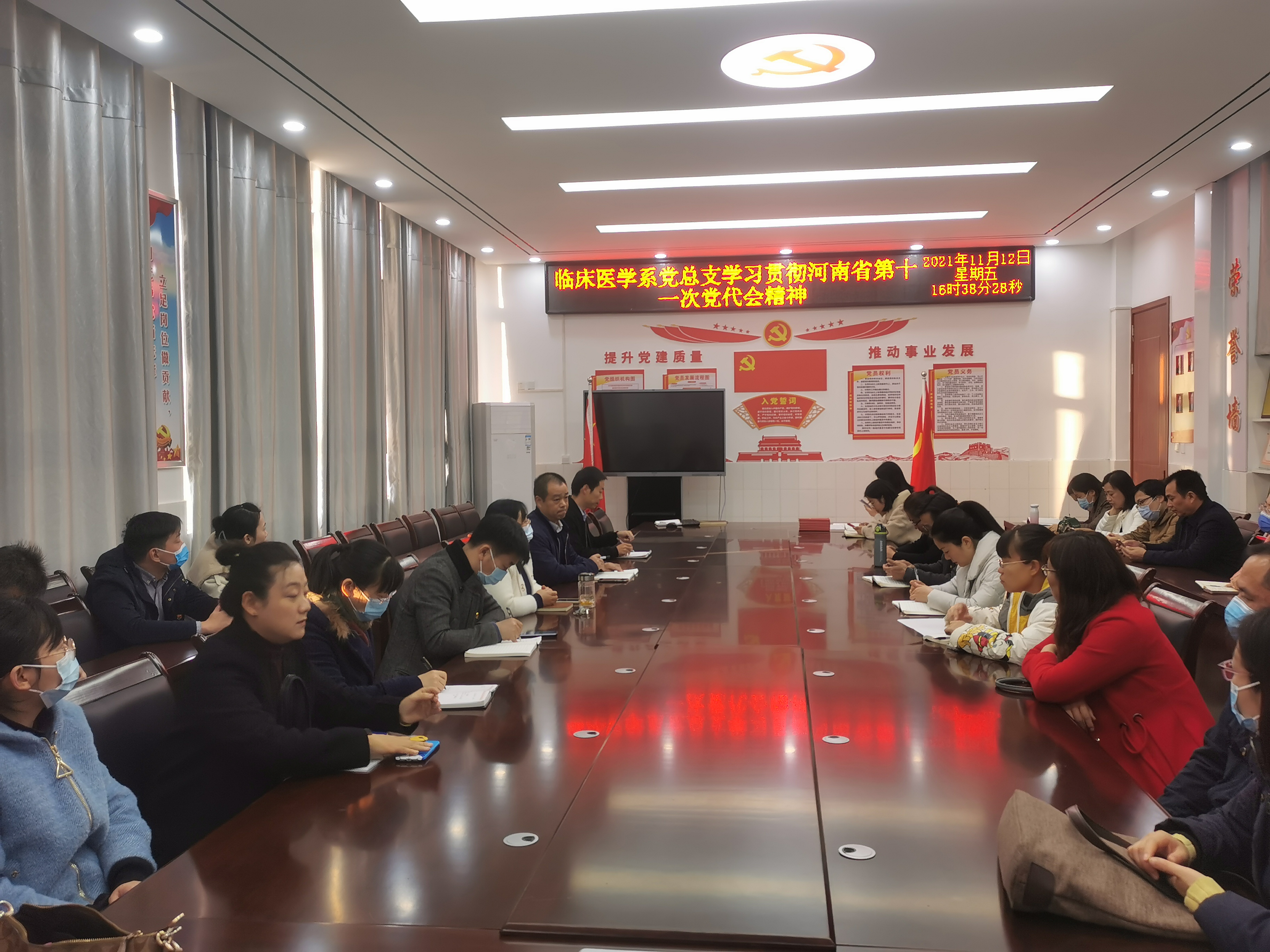 11月12日下午,临床医学系党总支在408会议室召开全体党员会议,专题传达学习中国共产党河南省第十一次代表大会精神。