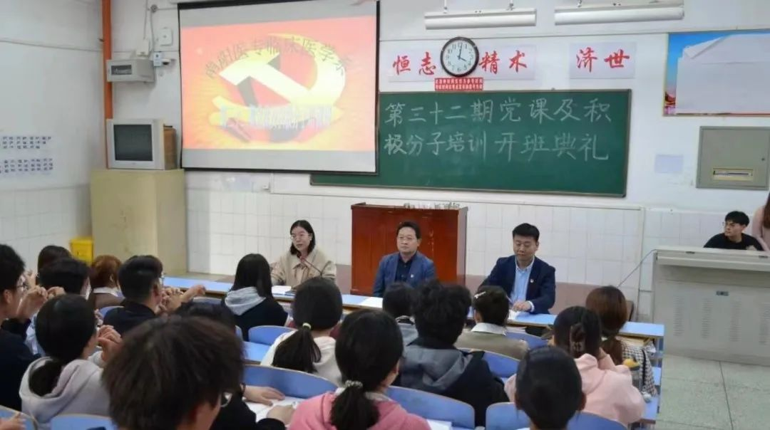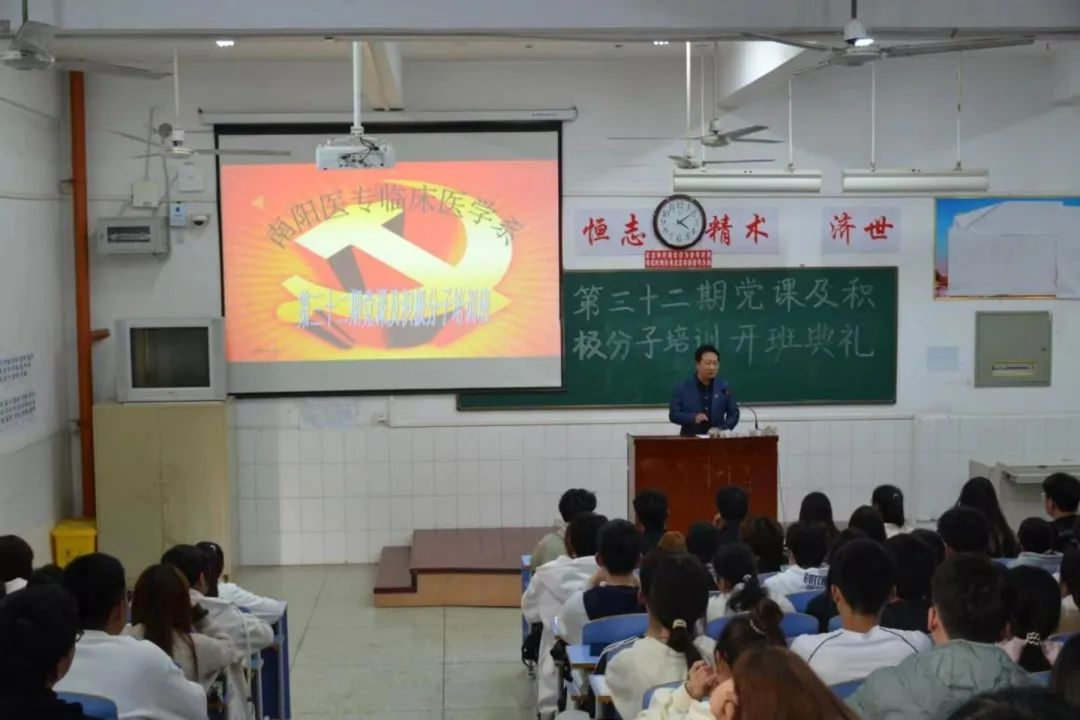 11月8日下午,临床医学系召开了第三十二期党课及积极分子培训班,此次培训在仲景西区4号教学楼201教室进行,出席会议的是系党总支书记宗山林、系党总支副书记王川、系常务副主任黄川锋和辅导员王桂春,共190名同学参与此次培训。