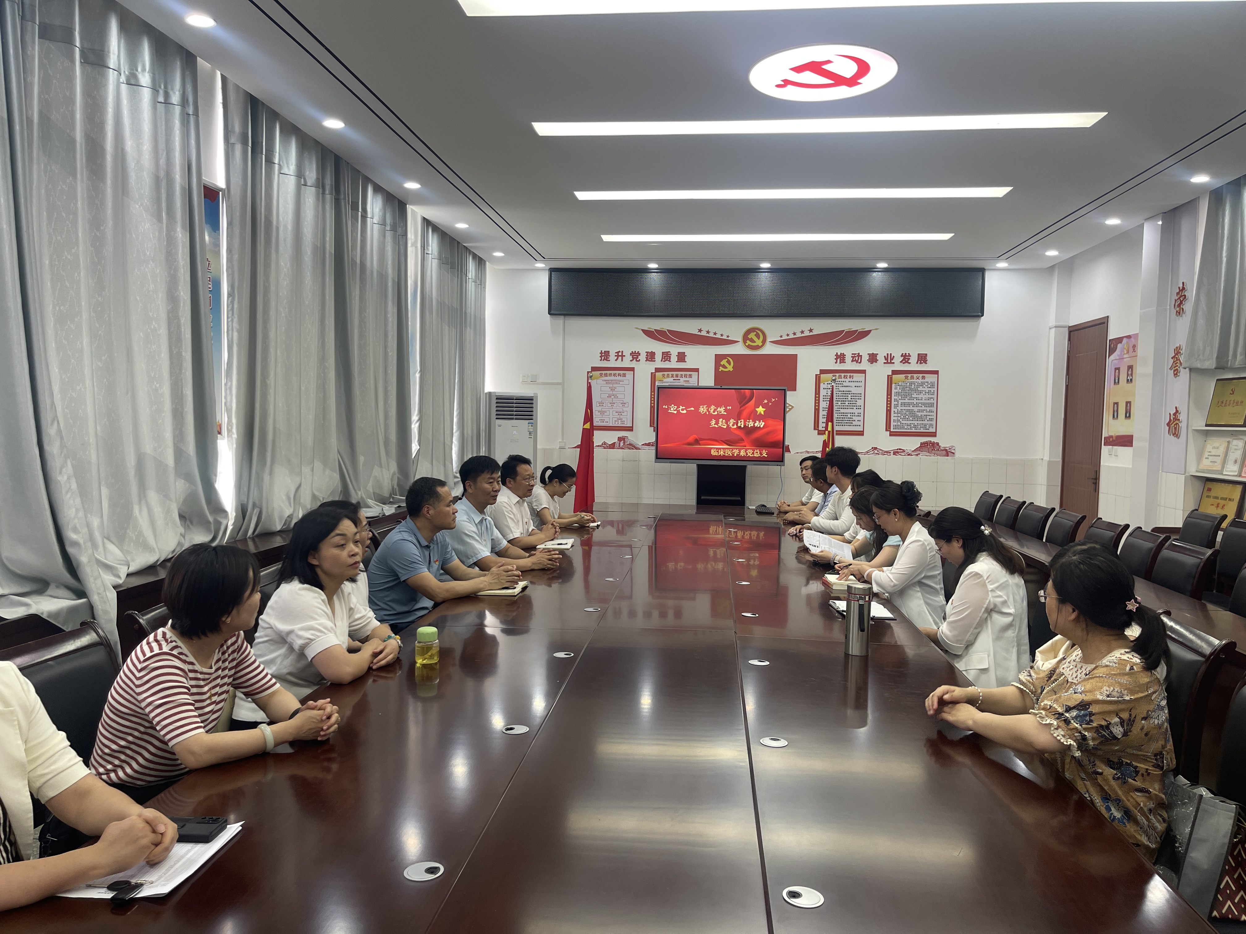 为推动党纪学习教育走深走实,着力增强思想引领、组织引领,激励党员干部不忘初心、牢记使命、开拓进取、担当作为,6月27日下午,临床医学系党总支开展“迎七一·强党性”主题党日活动。