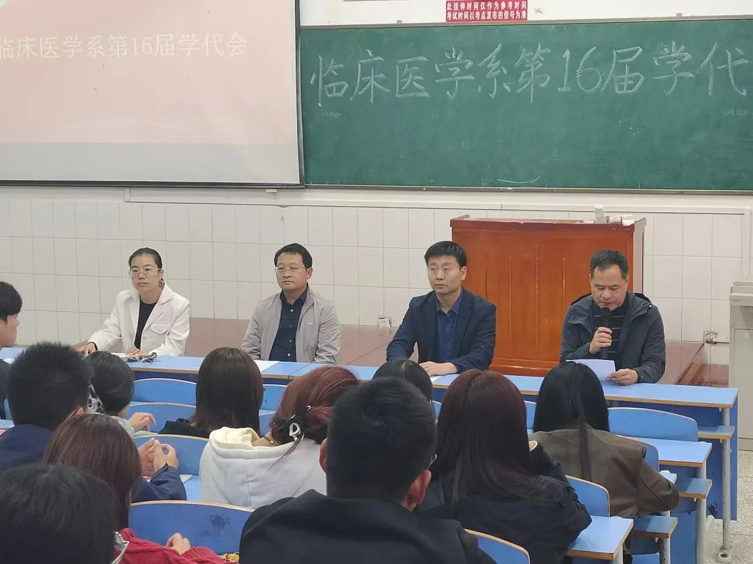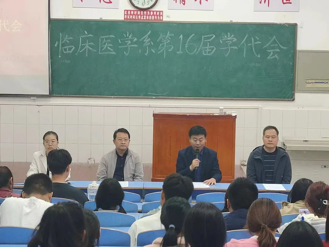 为深入贯彻落实习近平新时代中国特色社会主义思想和党的二十大精神,按照《南阳医学高等专科学校学生会改革方案》(宛医专团[2020]15号)要求,临床医学系于10月23日下午在4号教学楼301举行第16届学生代表大会。临床医学系党总支书记宗山林、党总支副书记王川、常务副主任黄川锋、科研副主任张铮、各班辅导员及90名学生代表出席大会,大会由王川主持。