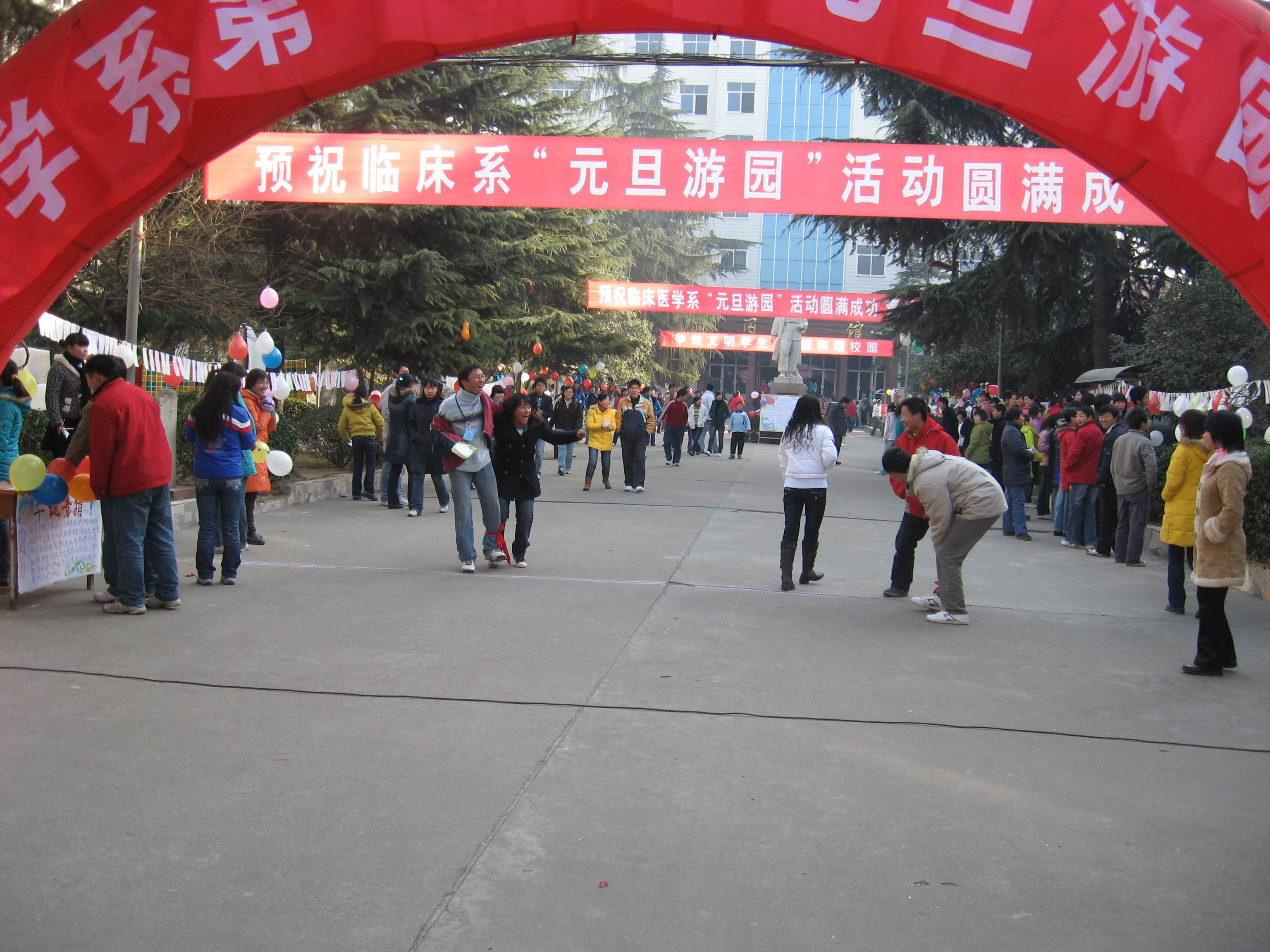 随着新年晨钟的敲响,伴着初升的第一轮冬日暖阳,2008年1月1日,南阳医专由临床医学系党总支主办、系团总支承办,以“师生同庆元旦佳节,齐心共建和谐校园”为主题的庆元旦游园活动在老校区隆重举行。系党总支书记宋新、系副主任王海鑫、秦玖刚,校宣传部张居中老师等共计1000多名师生参加了游园活动。