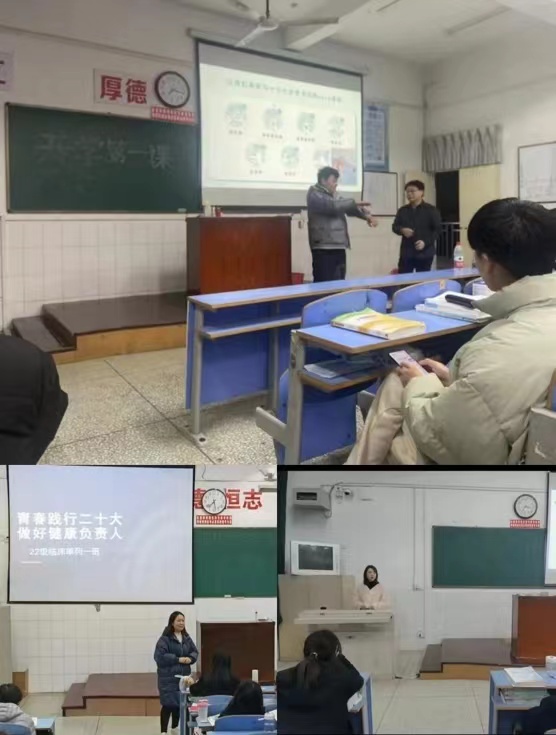 根据《中共南阳医专委员会关于以“开学第一课”为重点 开展2023年春季学期系列教育引导活动的工作方案》文件精神,临床医学系认真谋划、精心组织,2月27日,临床医学系领导班子及全体辅导员走进班级,召开了以“青春践行二十大 做好健康责任人”为主题的开学第一次班会。