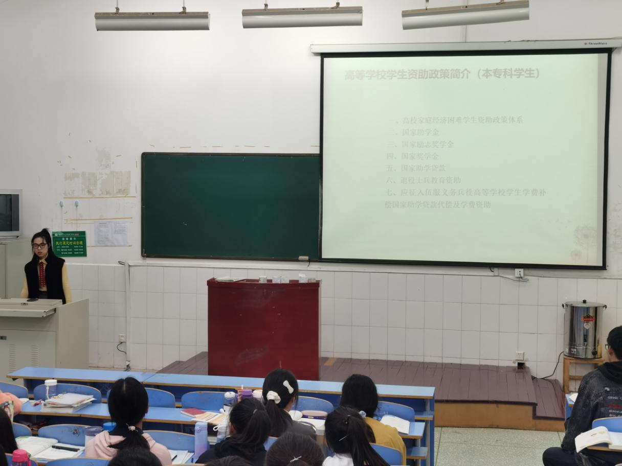 2、然后由辅导员老师向大家介绍国家奖助学金、以及国家助学贷款资助的政策,以及征信,金融等相关的一些知识,让同学们对国家资助政策有了进一步的了解。